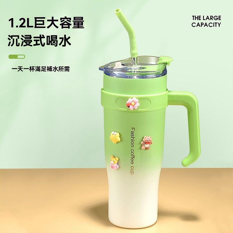 汽車保溫杯、漸變色高顔值、帶吸管網紅水杯、便攜手柄、長效保溫、不鏽鋼大麥克、1.2升大容量!